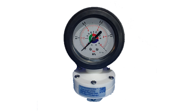 LONGSHINE隔膜压力表主要用于超纯和高腐蚀管线中,用来隔离和保护压力表或者真空表。他们可以用在软化水,硫酸,盐酸或者碱液中。